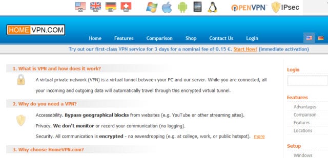 连同卢森堡、俄罗斯和德国的 TOR 节点。支持PPTP协议。